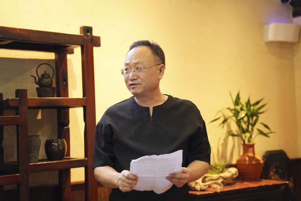 在饮马池31号(望东湖)开展活动期间,中国建筑学会会员、汉中市建筑学会副理事长、规划建设高级工程师、学会历史文化建筑保护传承专委会顾问委员毛刚做了“厚植文脉根基、建设文化强市”的主旨演讲。演讲详细介绍了国家历史文化名城汉中被国务院认定公布的由来、汉中国家历史文化名城资源、相关保护规划保护机制以及我市开展名城保护的有关情况,阐述了开展本次活动的现实意义,分享了参加本次活动的切身感受,抒发了一名建筑科技工作者对汉中这座国家历史文化名城的特殊情怀以及对历史名城保护的责任和意愿。学会建筑环境艺术专委会主任委员、汉中职业技术学院副教授方正对历史建筑传承保护与现代应用设计做学术讲解;学会历史文化建筑保护传承专委会委员余娜介绍了望东湖历史建筑溯源、功能改造、修缮保护利用等情况;非遗传承人雪璋对焦墨画做了介绍。