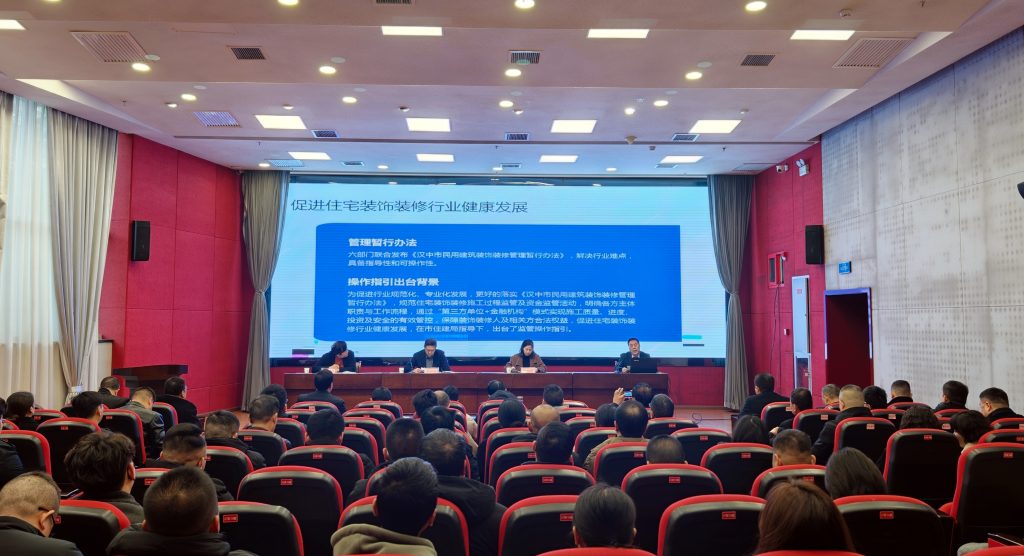 为深入推进由市住房和城乡建设局、市自然资源局、市城市管理局、市市场监督管理局、市行政审批服务局、市消防救援支队联合印发的《汉中市民用建筑装饰装修管理暂行办法》贯彻落实,提升行业管理水平,12月10日上午,由市住建局主办、建筑学会协办的《汉中市民用建筑装饰装修管理暂行办法》住建系统宣贯活动在市城市规划展览馆举行。