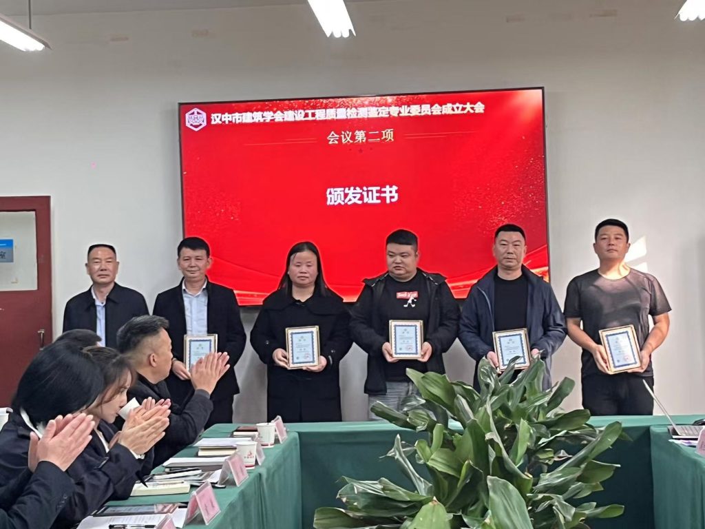 会议期间,宣读了《汉中市建筑学会关于成立建设工程质量检测鉴定专业委员会及组成人员名单的决定》《汉中市建筑学会建设工程质量检测鉴定专业委员会工作规程》,颁发了专委会牌匾和组成人员证书。专委会副主任委员兼秘书长廖聪和副主任委员吕战发做了表态发言。
