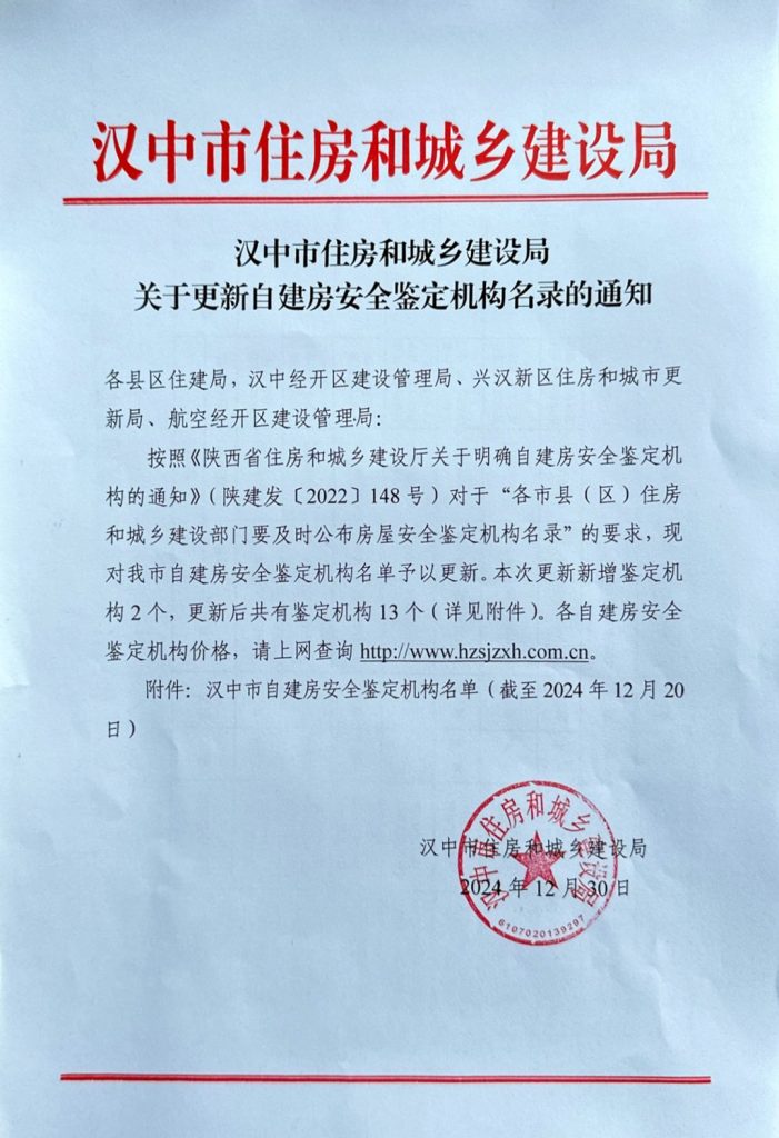 工程检测鉴定 汉中市住房和城乡建设局关于更新自建房安全鉴定机构名录的通知 2025-01-022025-01-03 by caizi 文章导航 汉中建设工程造价信息 2024年第11期汉中市建筑学会召开常务理事(扩大)会议