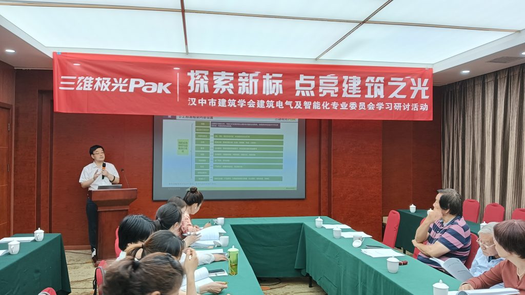 为深化电气智能化领域技术革新,推动应急照明系统标准化建设,5月27日下午,汉中市建筑学会建筑电气智能化专业委员会在红叶大酒店举行“探索新标·点亮建筑之光——应急照明系统新国标解析与高光效设备应用”专题学术交流活动。汉中市建筑学会理事长白晓雨出席并讲话,联系协调建筑电气智能化专业委员会的副理事长朱菊梅出席学术活动。国家注册一级照明设计师、三雄极光照明设计部经理何星海受邀主讲。活动汇聚行业专家及从业人员,围绕新国家标准实施与前沿技术应用展开深入探讨,聚焦应急照明新国标与高光效设备技术突破。