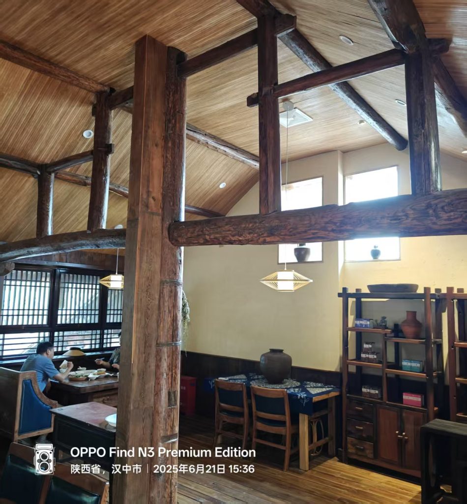 古朴典雅的丰味印象美学空间茶餐厅位于古汉台南侧的汉台街,所在建筑具有深厚的历史底蕴,承载着独特的文化记忆。从古朴的门窗到传统的屋檐,每一处细节都彰显着对历史文化的敬畏与珍视,让走进茶餐厅的顾客仿佛穿越时空,感受到浓厚的历史氛围。茶餐厅在科学合理的维修保护和利用过程中,始终秉持着尊重历史、传承文化的理念,在外观上最大程度维持了其原有的历史风貌与空间肌理,采用内置钢梁结构对原有木构架进行加固,新增钢结构藏于梁柱内部,有效提升了建筑的稳定性和安全性,延长了建筑的使用寿命。同时,为能够更好地满足现代休闲茶饮经营的需求,优化了内部空间提升了舒适性,使其能以茶餐厅的功能焕发新生,实现了历史文化保护与现代功能利用的有机结合。